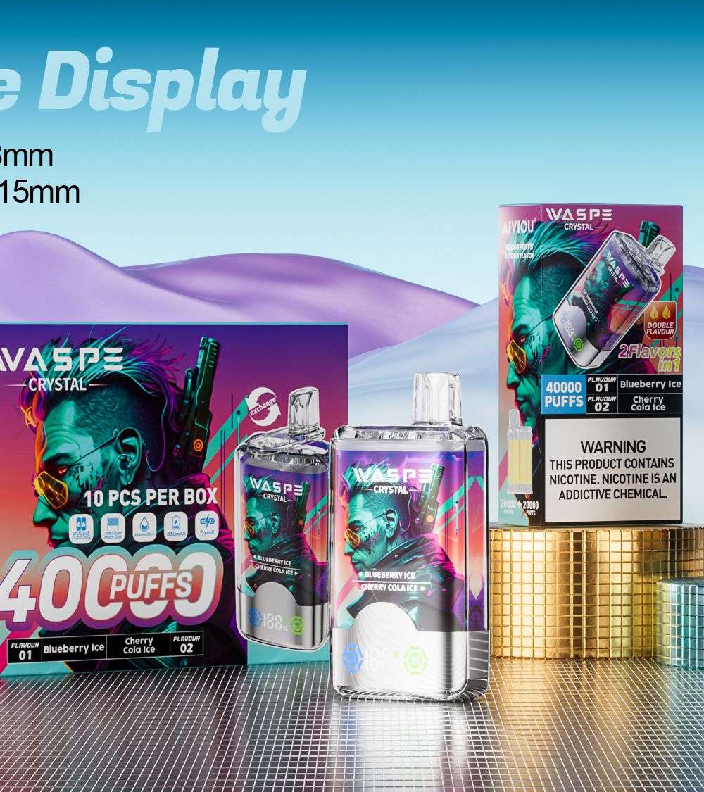 Experience the future of vaping with the WASPE Crystal Double Flavors 40000 Puffs Disposable Vape– where technology meets superior flavor!